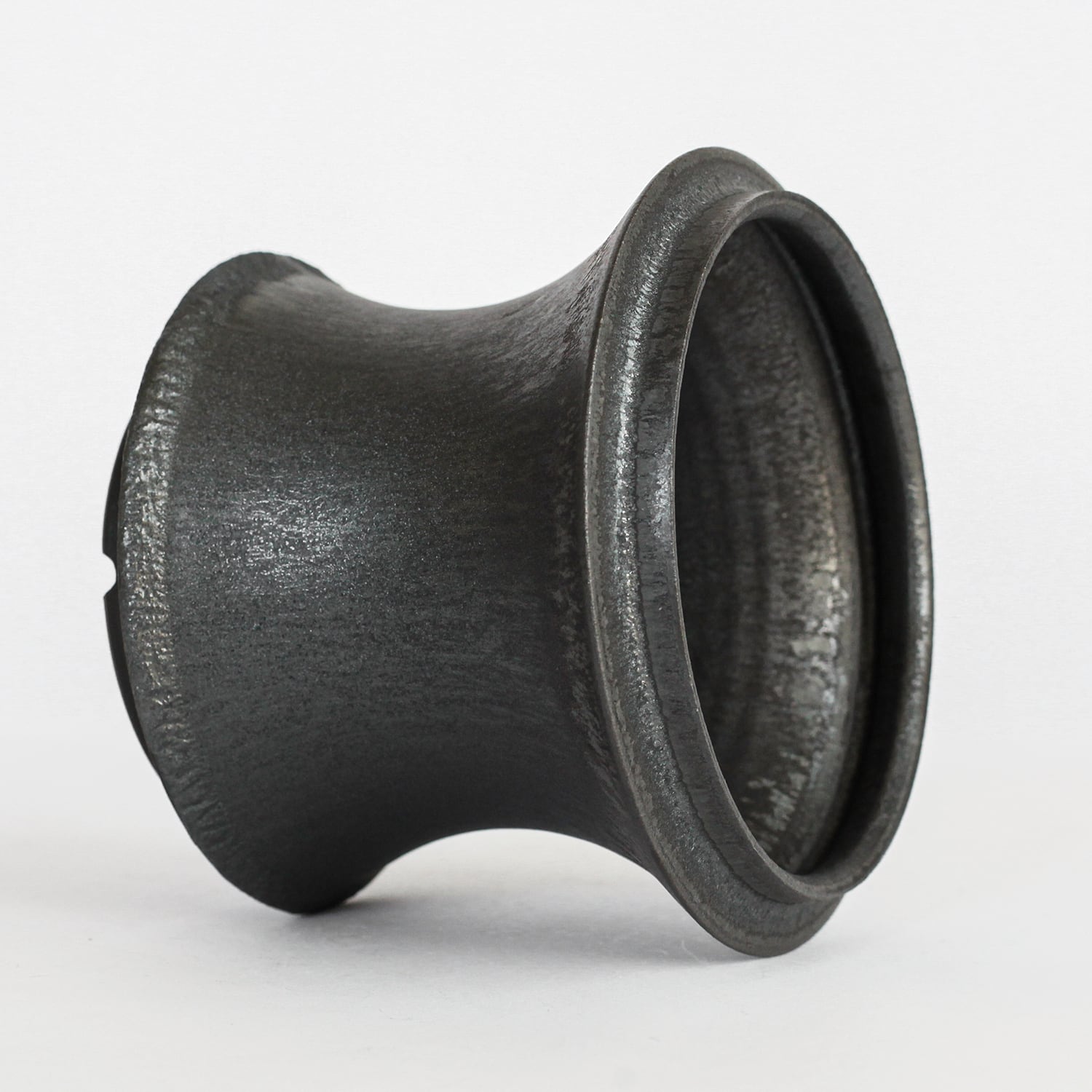 萩の陶芸作家、渋谷英一氏との試験的アプローチから偶発的に誕生した「Opus(オーパス)」シリーズ。陶芸作品的な柔和な膨らみそして曲線美、彫刻作品的な鋭敏な削りや彫りを一つの造形として成立させた作品群。