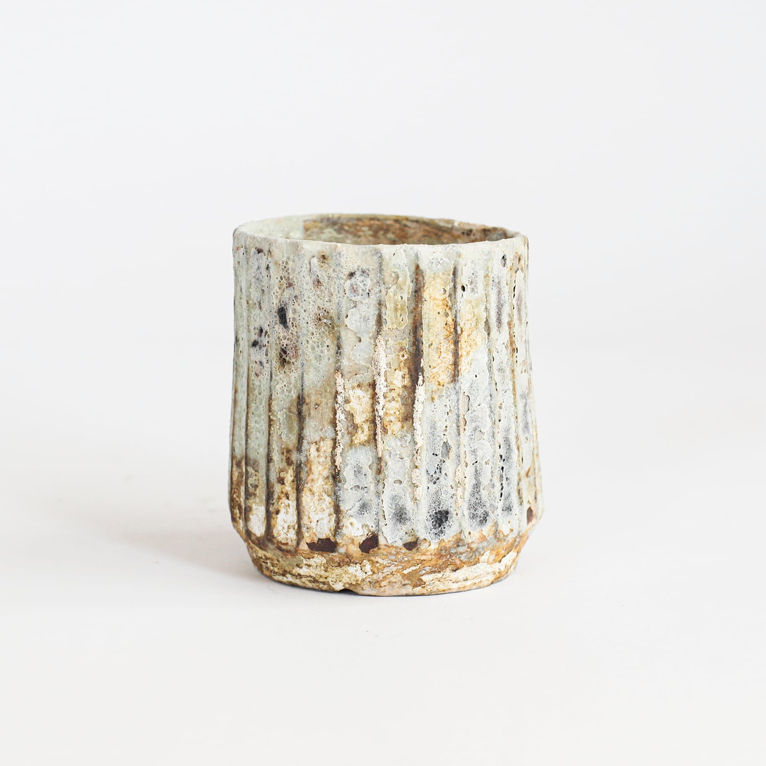 一点一点作家自らが手作業でデザインを施している為、全く同じテクスチャーは存在しません。単純な量産作業の概念の下の製作ではなく、単一品番ですが一点一点作家の感性の赴くままに表現しているからです。予めご了承頂ければ幸いです。また上記に付随し、窯入れのタイミングや諸々の事象により肌質・色味・濃淡にムラが出ることが御座いますが、そちらも併せてご了承頂ければ幸いです。