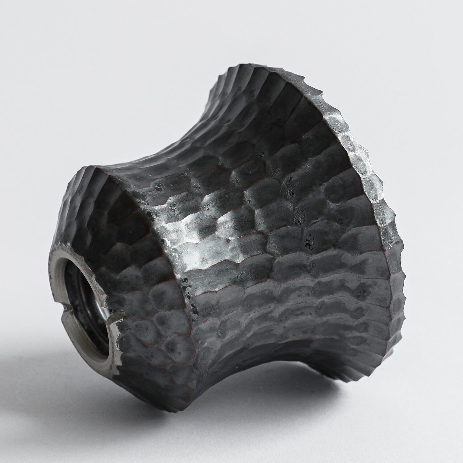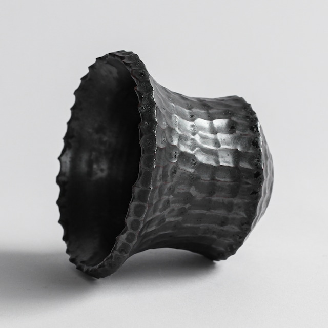 荒々しくも洗練された佇まい、不規則且つ大胆に施されたカッティング、文字に起こすと無骨で男性的な印象を与えるが、独自調合による金属釉(結晶とベンガラを用いた独特の質感)が塗布される事により都会的でモダンな印象に仕上がっております。