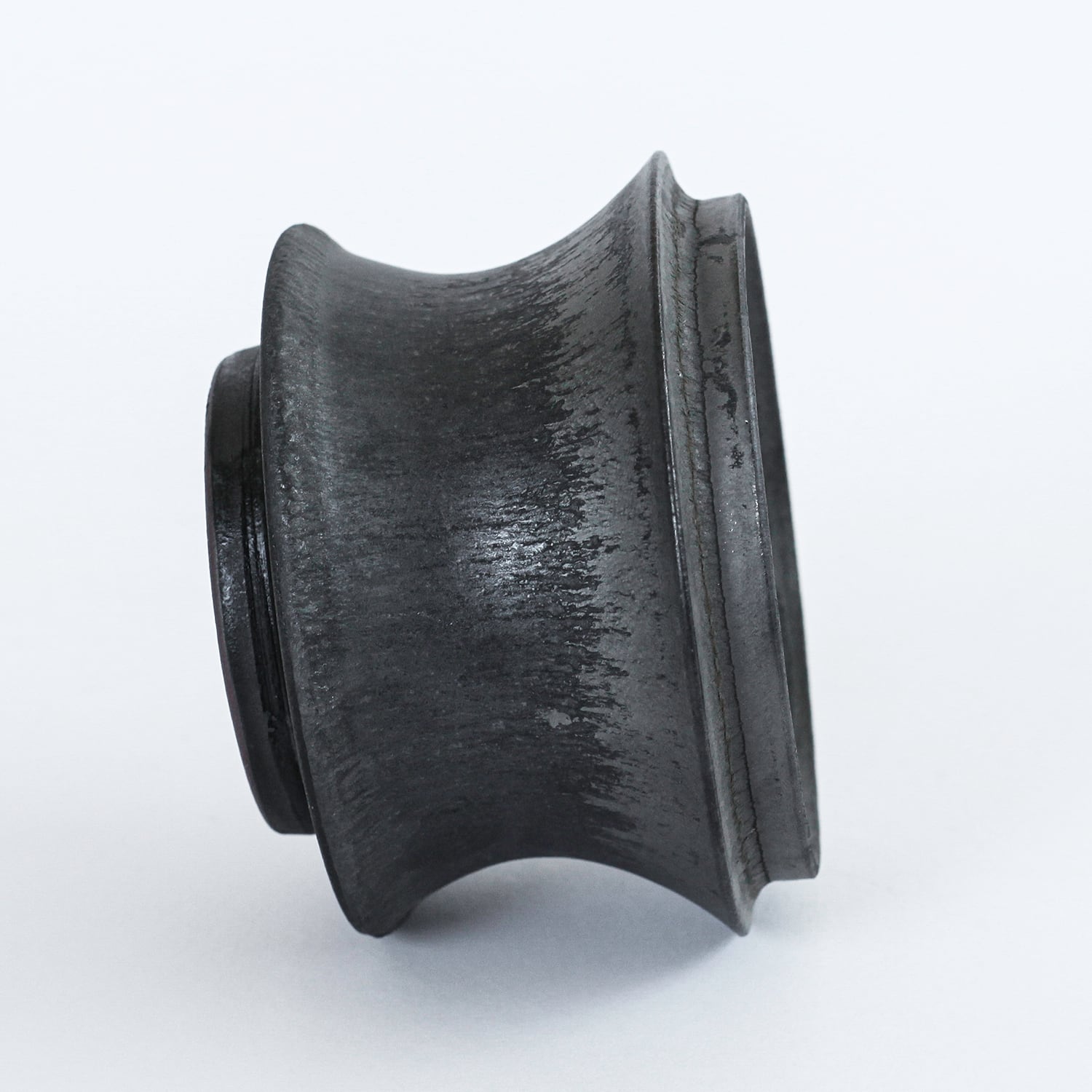 萩の陶芸作家、渋谷英一氏との試験的アプローチから偶発的に誕生した「Opus(オーパス)」シリーズ。陶芸作品的な柔和な膨らみそして曲線美、彫刻作品的な鋭敏な削りや彫りを一つの造形として成立させた作品群。