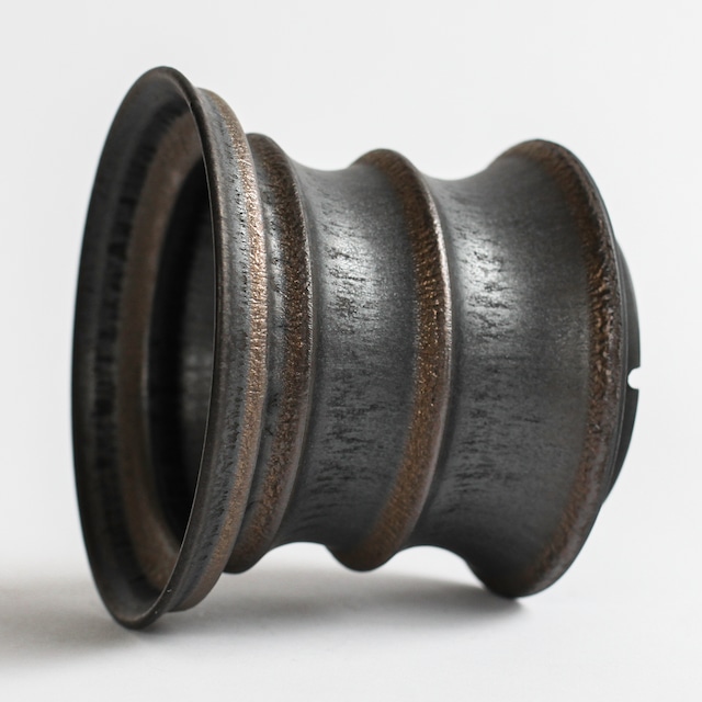 現代的な形状・デザインとは対極的に、経年変化が付与されたような鉄錆感溢れる肌質、テクスチャーを言語化するのであれば“退廃美”が尤も妥当かと。