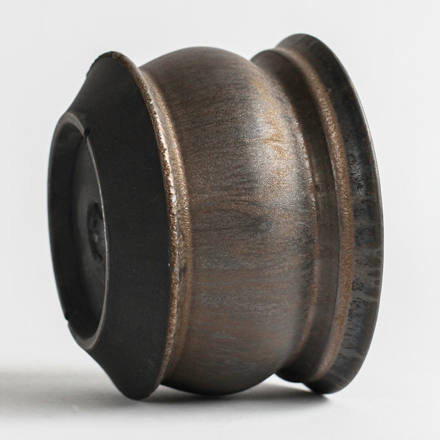 萩の陶芸作家、渋谷英一氏との試験的アプローチから偶発的に誕生した「Opus(オーパス)」シリーズ。陶芸作品的な柔和な膨らみそして曲線美、彫刻作品的な鋭敏な削りや彫りを一つの造形として成立させた作品群。