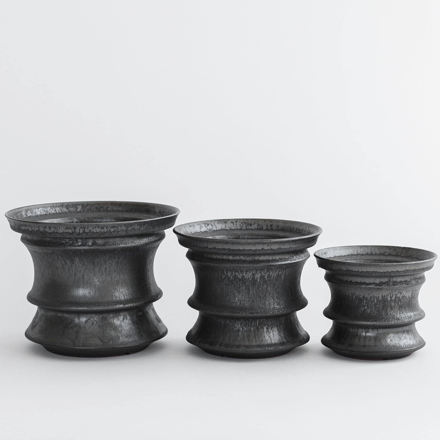 萩の陶芸作家、渋谷英一氏との試験的アプローチから偶発的に誕生した「Opus(オーパス)」シリーズ。陶芸作品的な柔和な膨らみそして曲線美、彫刻作品的な鋭敏な削りや彫りを一つの造形として成立させた作品群。