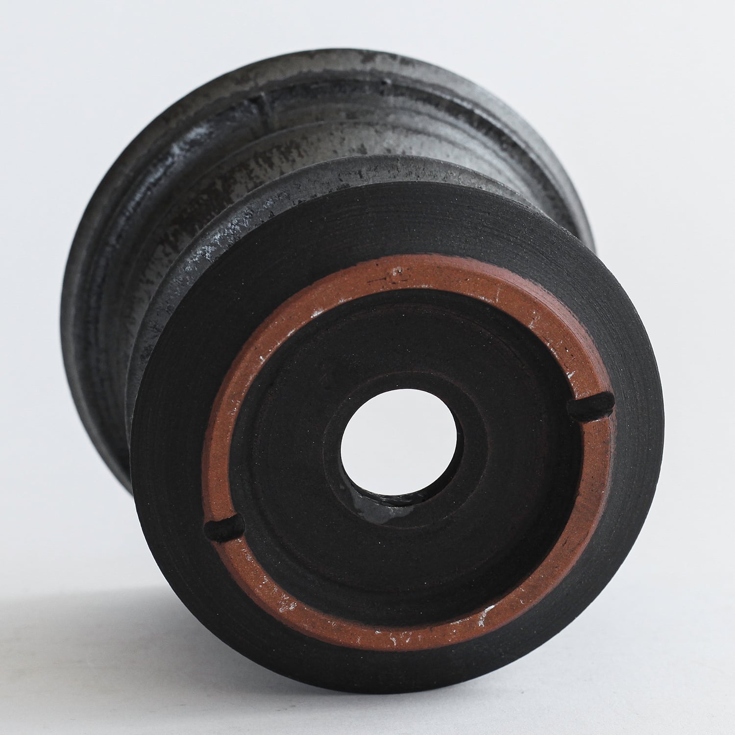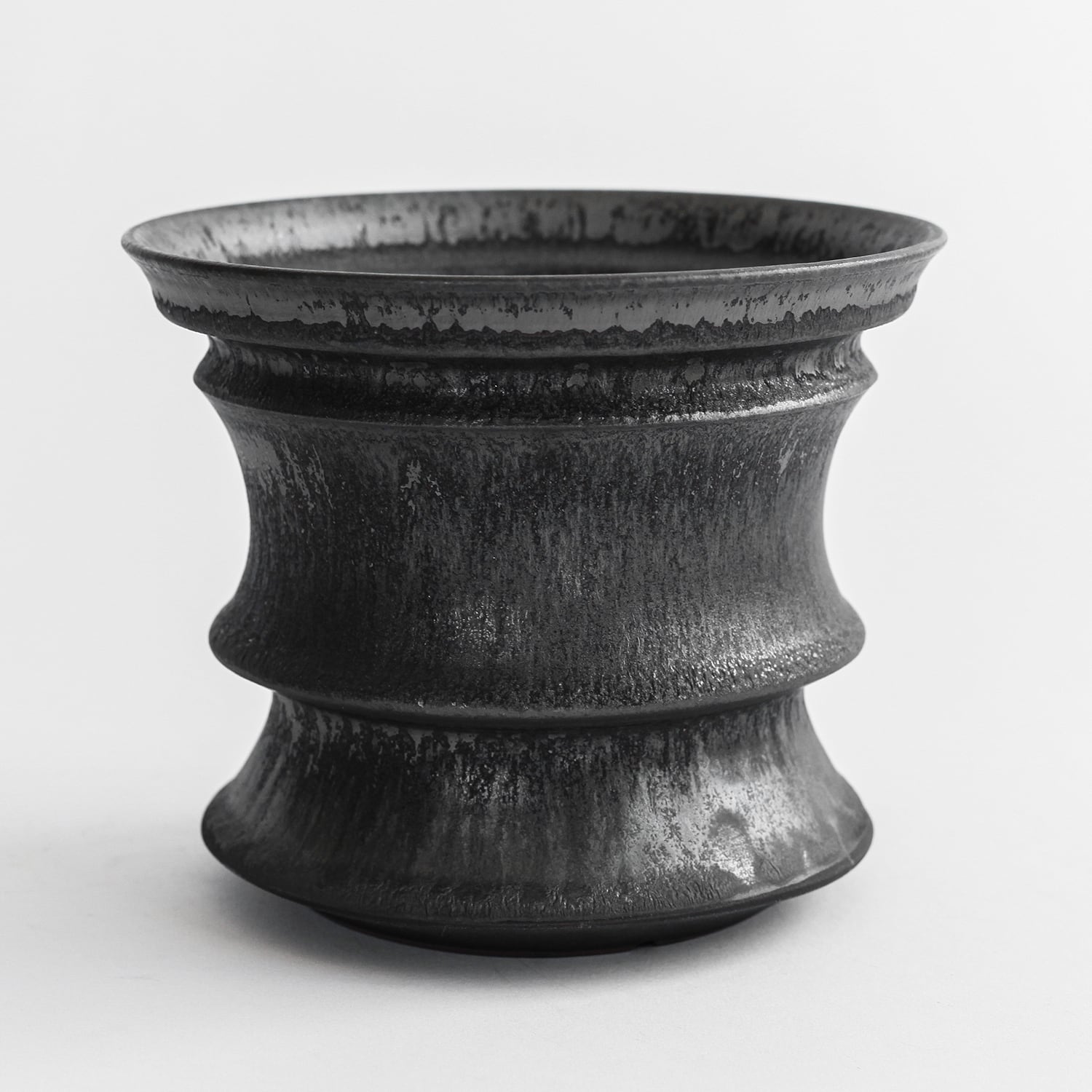 萩の陶芸作家、渋谷英一氏との試験的アプローチから偶発的に誕生した「Opus(オーパス)」シリーズ。陶芸作品的な柔和な膨らみそして曲線美、彫刻作品的な鋭敏な削りや彫りを一つの造形として成立させた作品群。