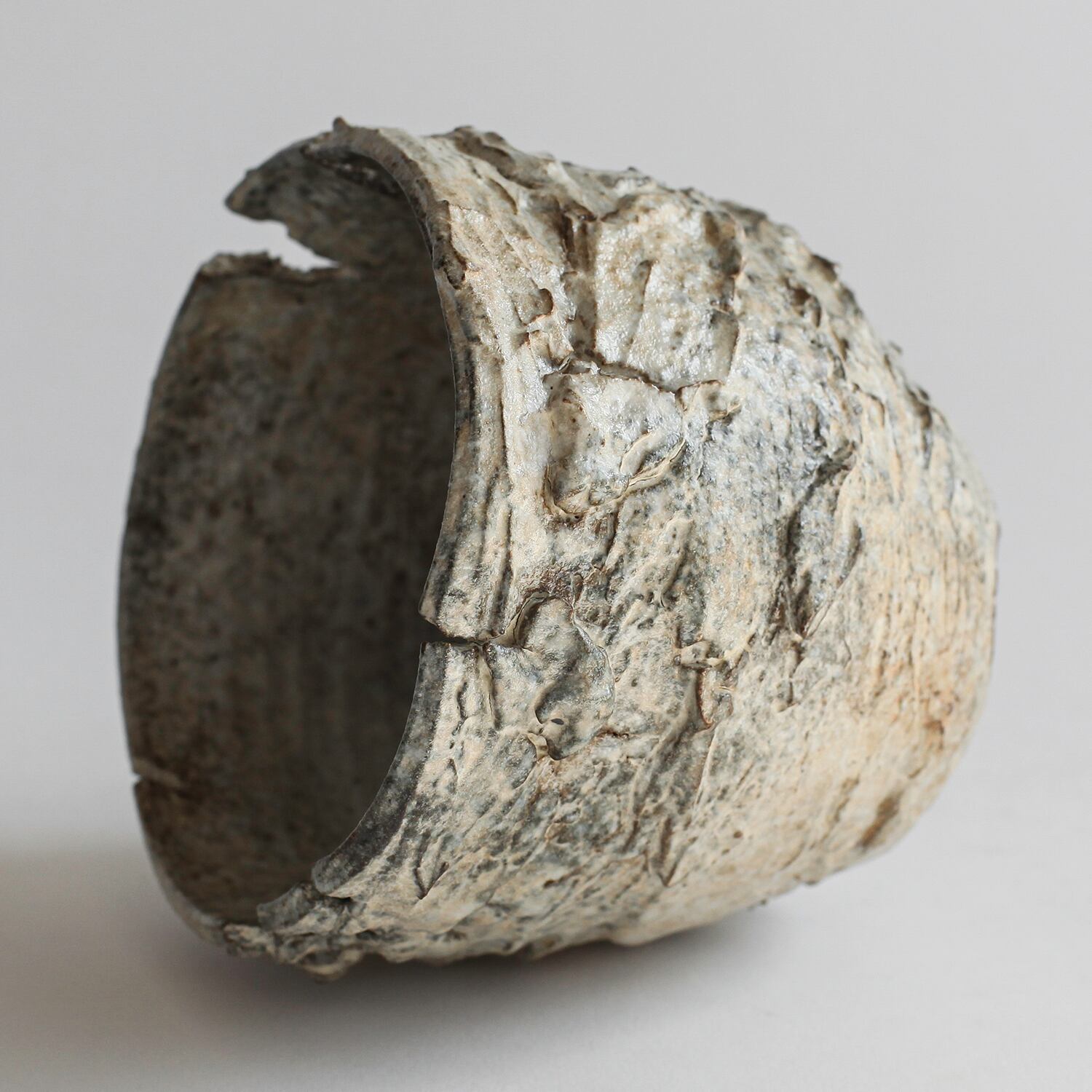 その結果、表面はまるで岩肌のようにざらつき、焼け跡や土の滲みが層となって現れています。