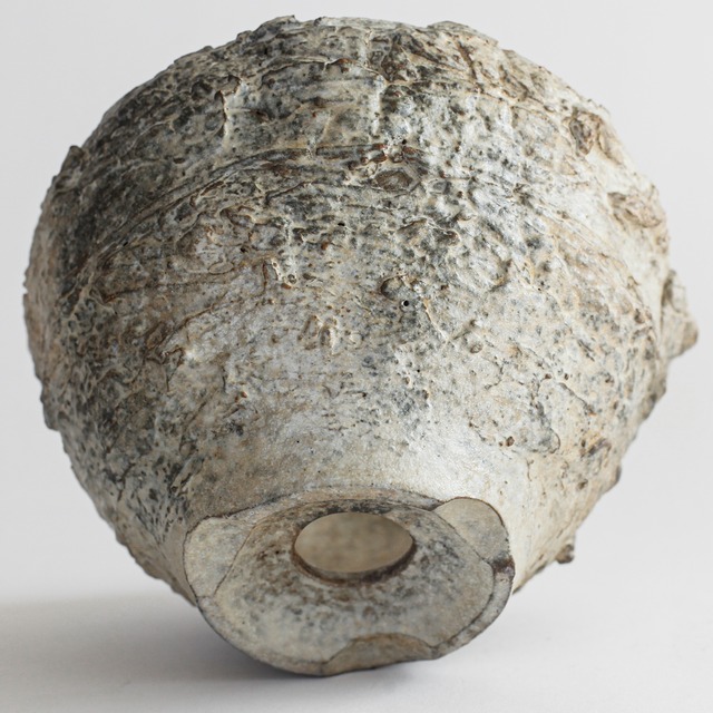 その結果、表面はまるで岩肌のようにざらつき、焼け跡や土の滲みが層となって現れています。