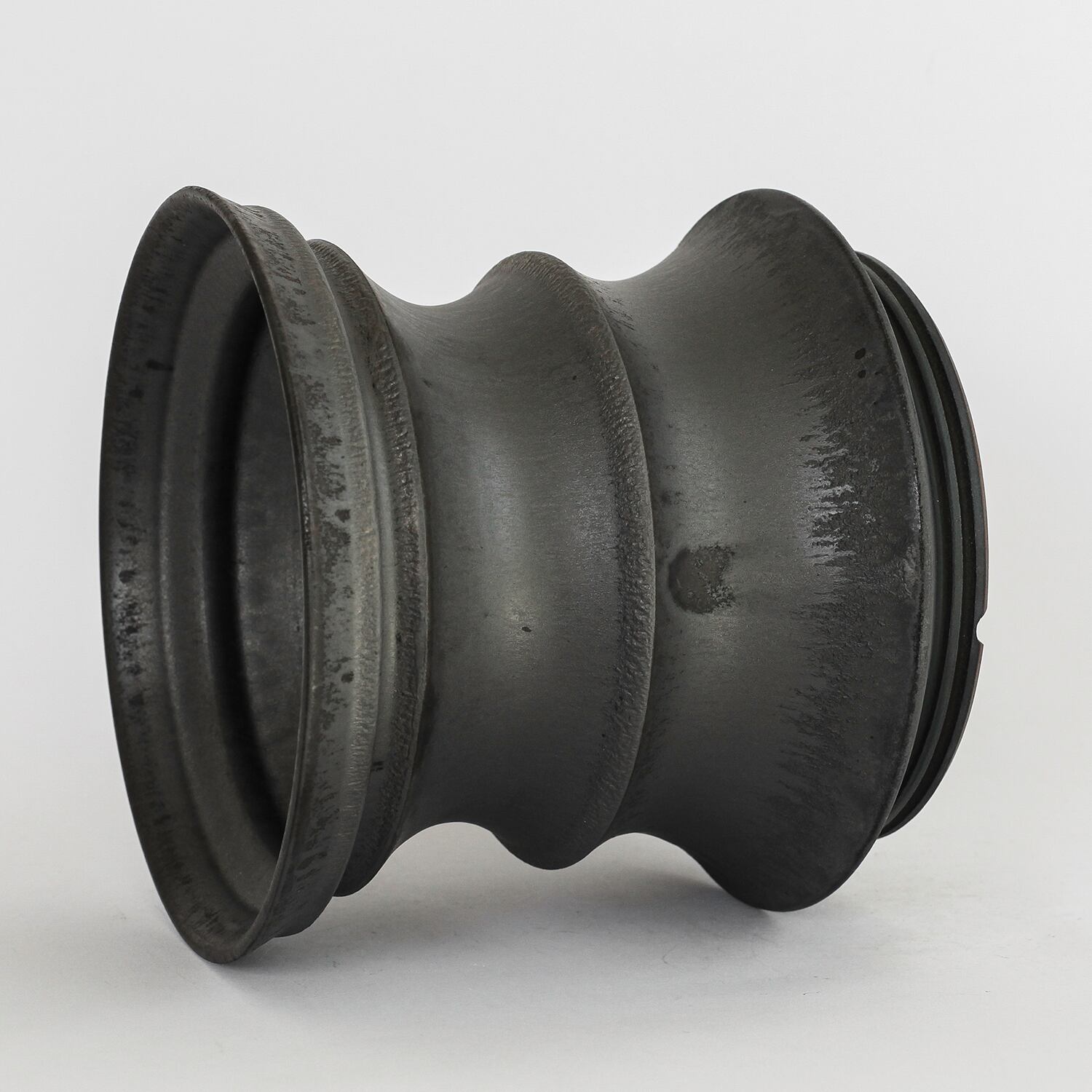 萩の陶芸作家、渋谷英一氏との試験的アプローチから偶発的に誕生した「Opus(オーパス)」シリーズ。陶芸作品的な柔和な膨らみそして曲線美、彫刻作品的な鋭敏な削りや彫りを一つの造形として成立させた作品群。