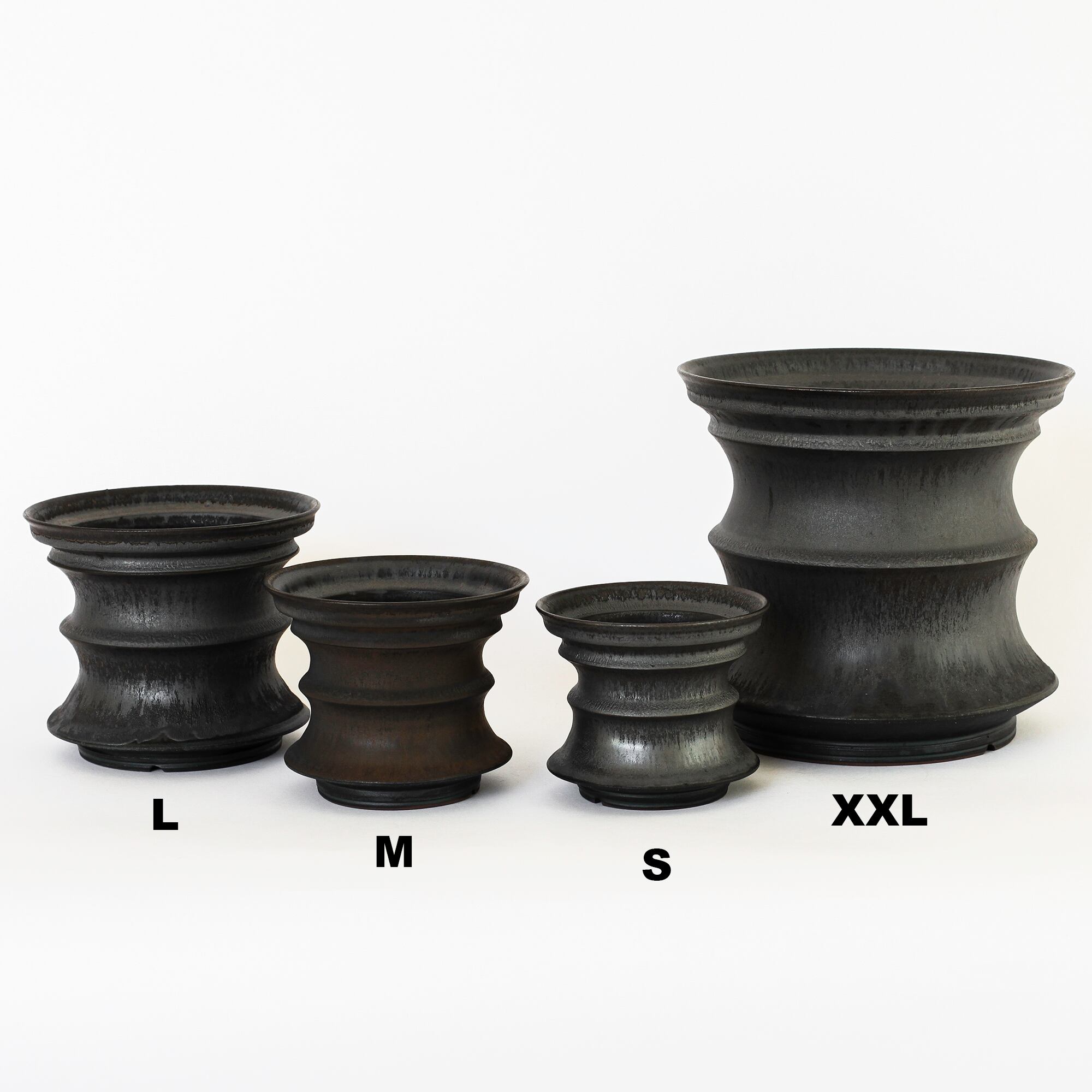 萩の陶芸作家、渋谷英一氏との試験的アプローチから偶発的に誕生した「Opus(オーパス)」シリーズ。陶芸作品的な柔和な膨らみそして曲線美、彫刻作品的な鋭敏な削りや彫りを一つの造形として成立させた作品群。