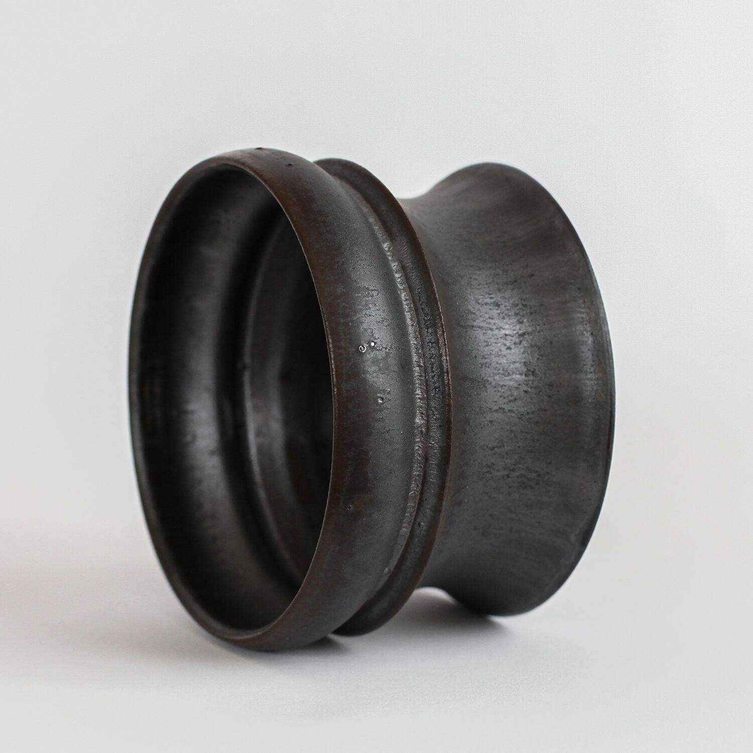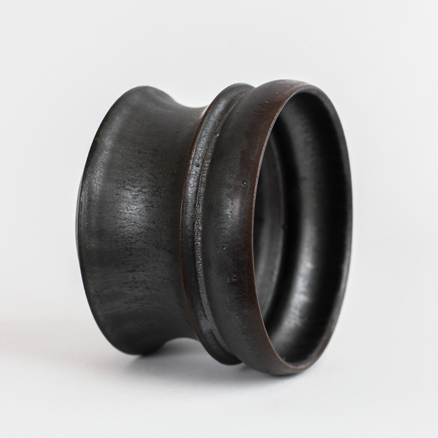 萩の陶芸作家、渋谷英一氏との試験的アプローチから偶発的に誕生した「Opus(オーパス)」シリーズ。陶芸作品的な柔和な膨らみそして曲線美、彫刻作品的な鋭敏な削りや彫りを一つの造形として成立させた作品群。