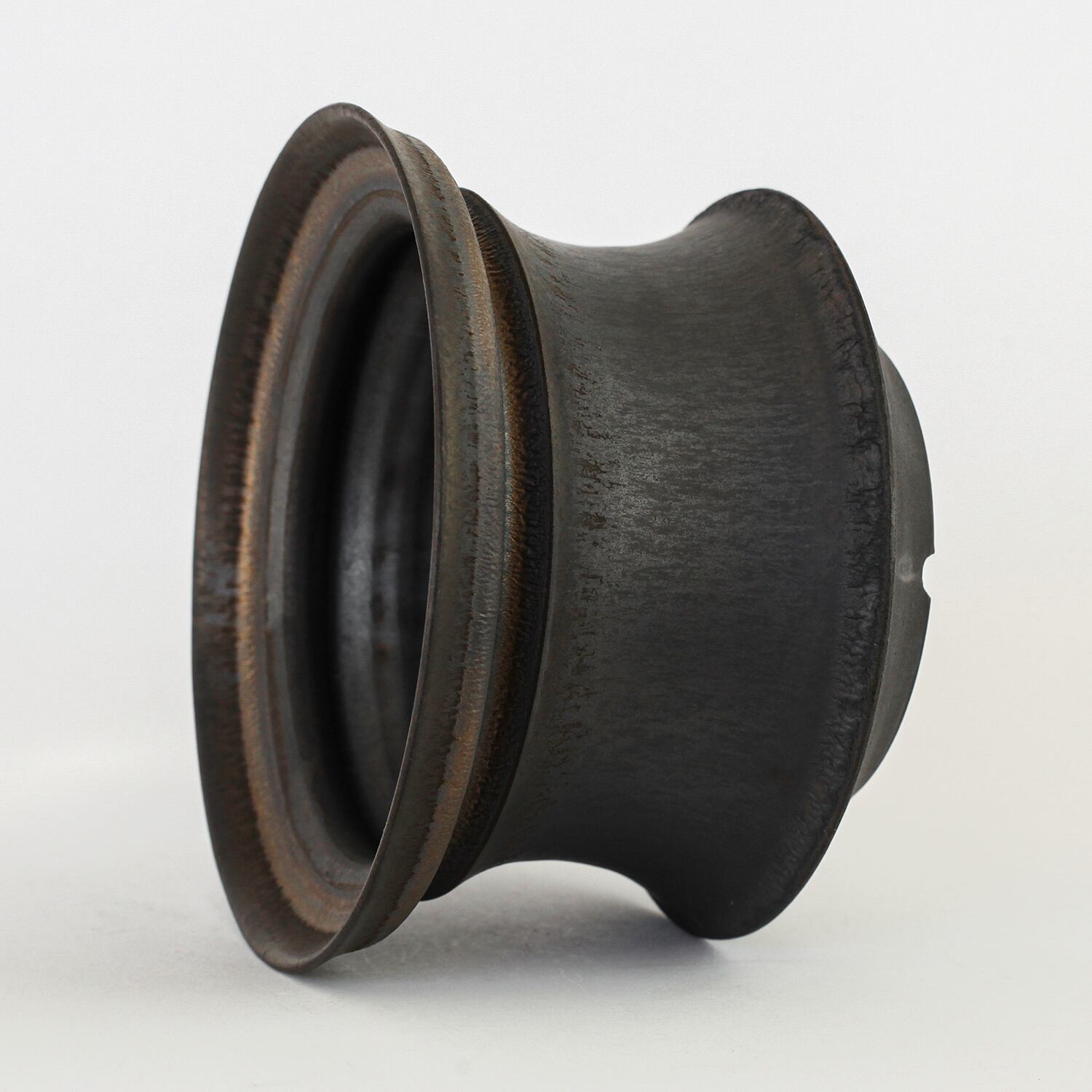 萩の陶芸作家、渋谷英一氏との試験的アプローチから偶発的に誕生した「Opus(オーパス)」シリーズ。陶芸作品的な柔和な膨らみそして曲線美、彫刻作品的な鋭敏な削りや彫りを一つの造形として成立させた作品群。