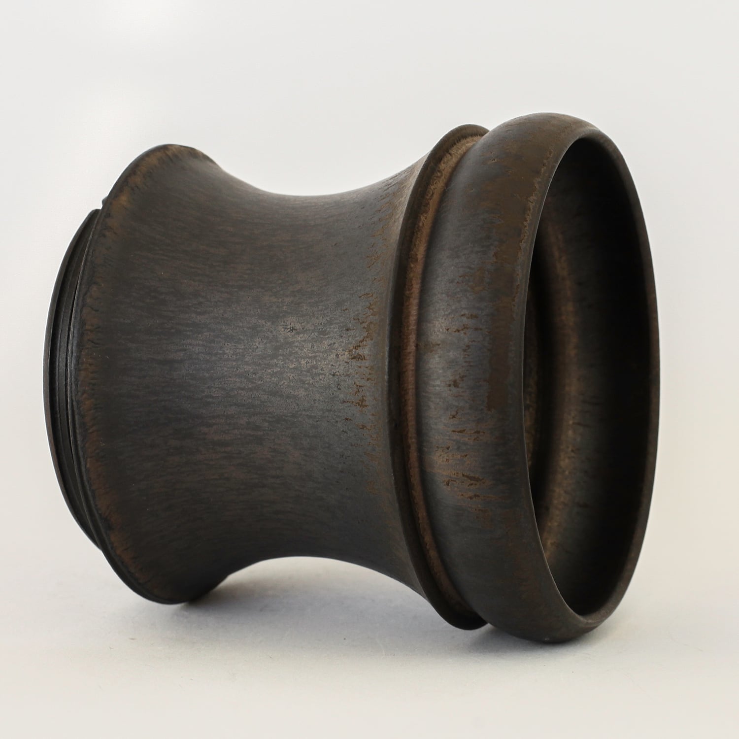 萩の陶芸作家、渋谷英一氏との試験的アプローチから偶発的に誕生した「Opus(オーパス)」シリーズ。陶芸作品的な柔和な膨らみそして曲線美、彫刻作品的な鋭敏な削りや彫りを一つの造形として成立させた作品群。